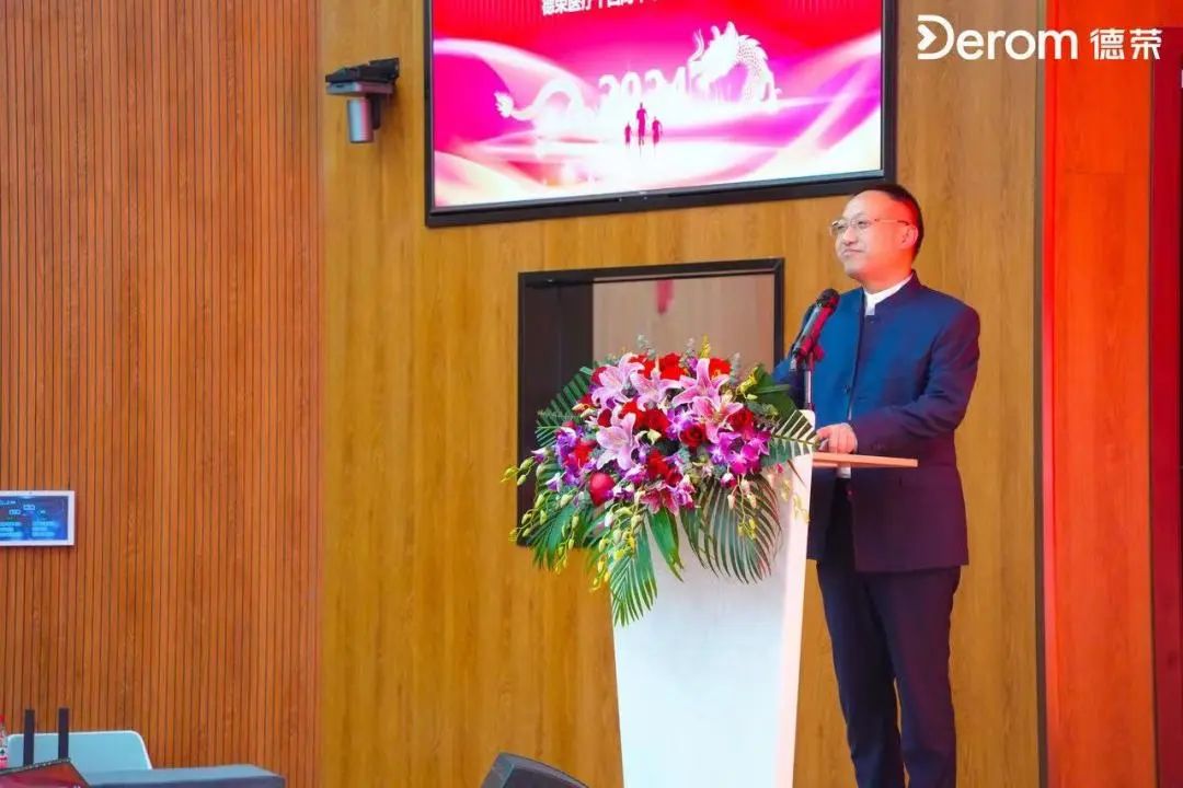 “做難而正確的事情!推動(dòng)以‘醫(yī)院需求’為中心的業(yè)務(wù)高質(zhì)量發(fā)展、以‘高效管理’為中心的內(nèi)部體系化建設(shè)、以‘重大項(xiàng)目’為中心的新質(zhì)增長(zhǎng)力合作?!钡聵s醫(yī)療董事長(zhǎng)郭德斌以《征程寥廓,馳而不息》為題發(fā)表演講,多維度釋放德榮聚焦醫(yī)療智慧供應(yīng)鏈體系建設(shè)、在2024年高質(zhì)量發(fā)展中勇立潮頭的信心和決心。