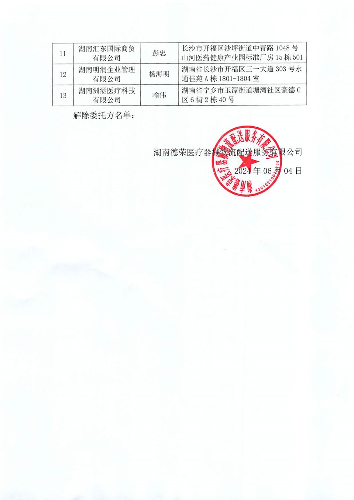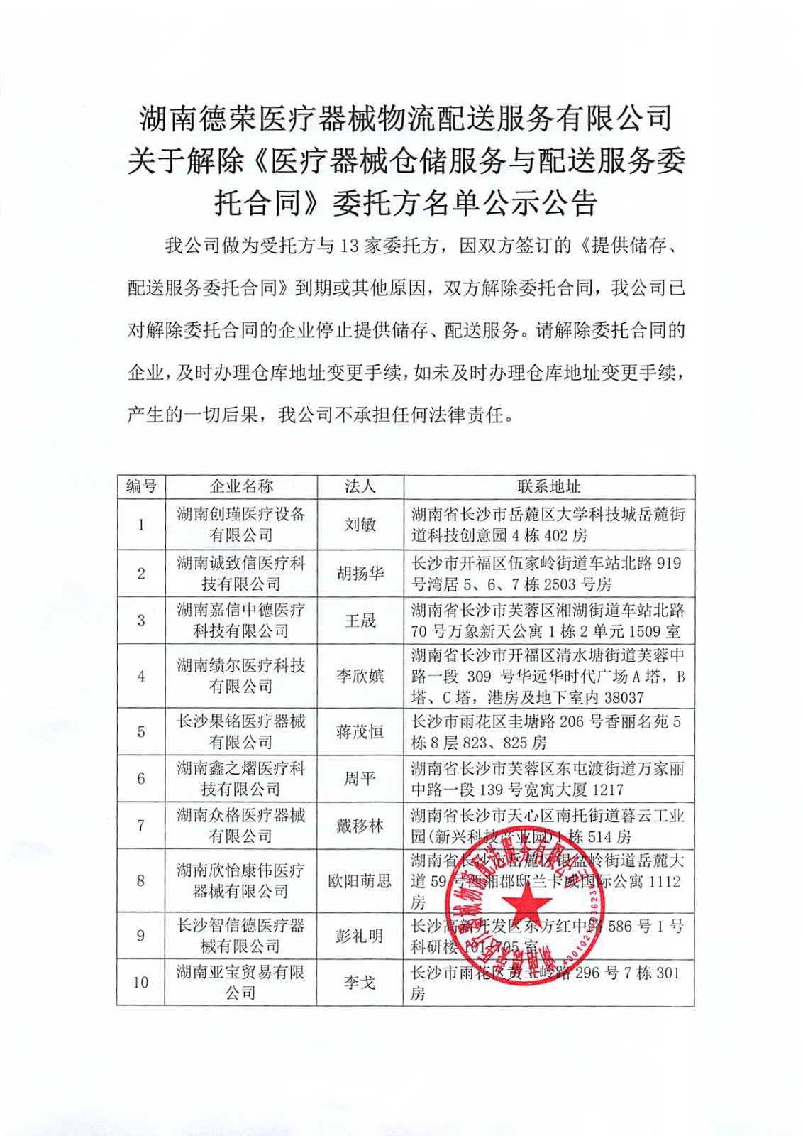 關于解除《醫(yī)療器械倉儲服務與配送服務委托合同》委托方名單公示公告